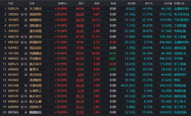 注:商业航天概念股集体活跃(截至12月12日收盘)