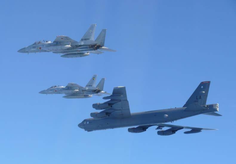 美国官方的态度就是,不承诺以具体行动支持日本,仅不希望中日冲突进一步升级。实则美国乐见日本挑衅中国,但不能动手支援,就搞点小动作。于是美国派了B-52轰炸机给日本首相高市早苗撑腰。在2025年12月10日,美国空军的B-52轰炸机来了!打着日美双边训练的名义,美国空军出动2架B-52轰炸机前往日本,日本则出动了3架F-35战斗机和3架F-15战斗机,在日本海上空飞行训练。
