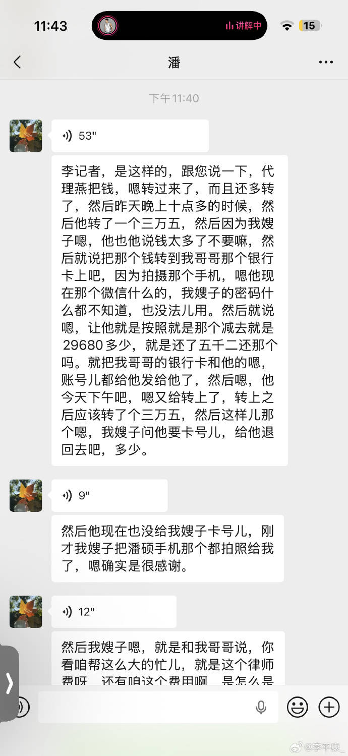 据体育博主李平康透露:潘硕家人发来信息,戴琳已把欠款于今日还清,而且还有多给5000多,潘妈妈不愿多收,表示想要退回,不过戴琳也没有答应还是转了35000,这一点还是要客观的通报给大家的,相信潘硕在天之灵也会欣慰的… 潘硕家人也委托我在微博上向所有关心他们的球迷朋友表达感谢!这件事总算了结,也希望潘硕可以安息!