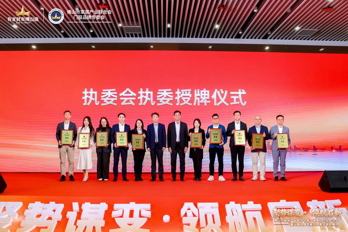 李德、陈浩斌为25家执委单位授牌,涵盖老赖不赖超安全门窗、德技优品门窗、罗兰西尼门窗、圣堡罗整体门窗、安格尔门窗、伊盾门窗、百利玛门窗、帝奥斯门窗、博仕门窗、一米阳光门窗、荣高门窗、冠豪门窗、怡发门窗、美百年儿童安全门窗、正金门窗、好博窗控、广东新华强玻璃、白云易乐隔热条、汉狮光动科技 (广东) 有限公司、英辉铝业、广东高登铝业集团、荣基密封胶条、CMECH希美克、集泰股份、泰诺风隔热条,覆盖门窗生产制造与供应链核心环节;以及相关领导为12家委员单位授牌,夯实全产业链协同基础;