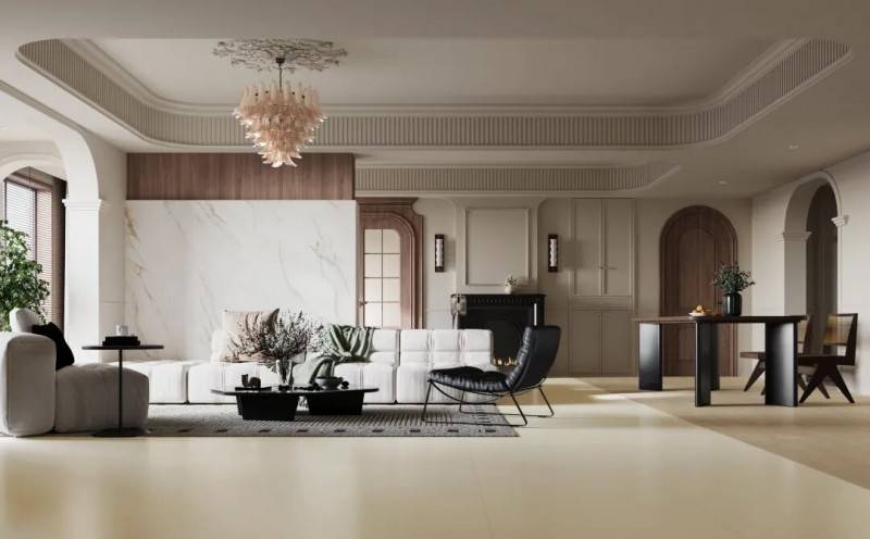 雅致轻奢风格选用金丝绒系列主砖,搭配质感配砖,勾勒低调奢雅质感;混搭中古风格以金丝绒系列温暖色调为基底,用复古纹理配砖碰撞现代气息;简约现代风格主打金丝绒系列的轻盈纹理与留白设计,回归生活本真;摩登东方风格以宋境系列为核心,融入东方意境与现代设计巧思;优雅法式风格则通过金丝绒系列的温润质感,搭配浪漫雕花配砖,营造精致慵懒的巴黎情调。