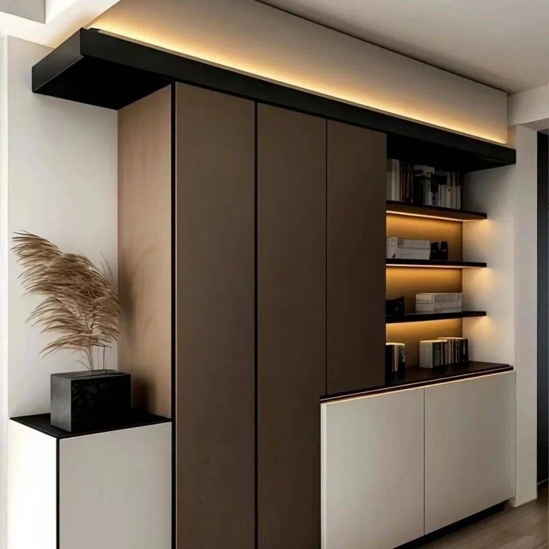 ③进退:柜体不在同一平面,体块之间存在进退关系,以此来增强空间的层次感