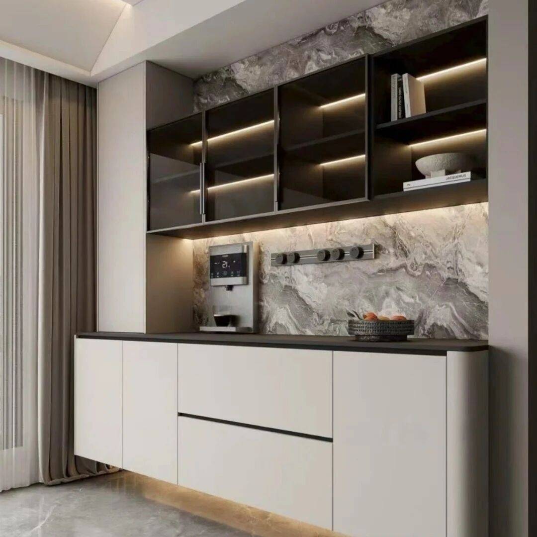 在餐边柜中加入隐藏式灯带,能瞬间提升氛围感