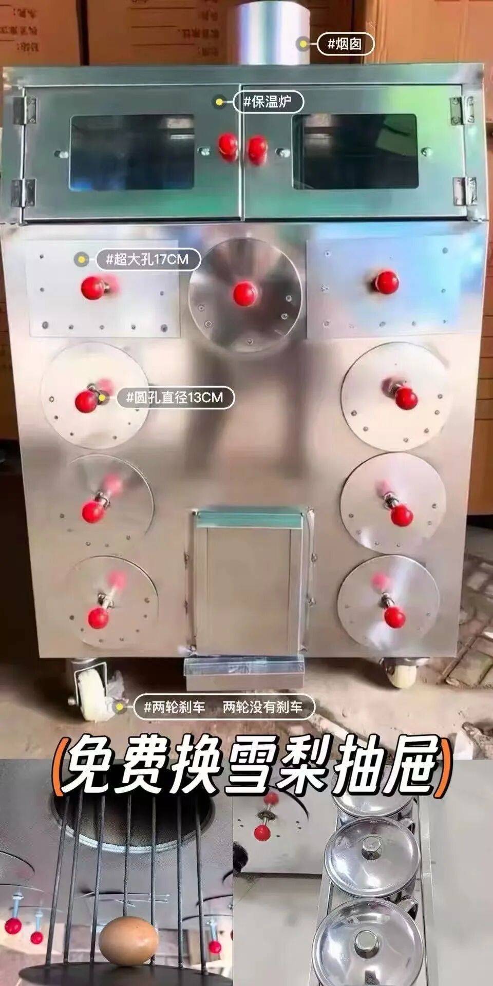 物品介绍:商用烤红薯机9成新|9孔带轮子 气炭两用,容量大,一次能烤不少红薯、玉米、土豆、梨都能用 加厚钢板,结实耐用,带保温炉,操作简单,移动方便 功能正常,配件齐全,成色不错,没怎么用过 适合小吃摊、夜市、便利店,冬天摆摊很实用~ 包邮(偏远地区除外),支持自提 价格可聊,喜欢直接拍,细节图私聊发~