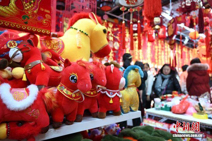 1月17日,内蒙古呼和浩特市,商家售卖马年元素新春饰品。中新社记者 刘文华 摄