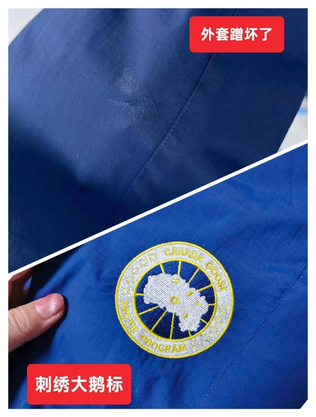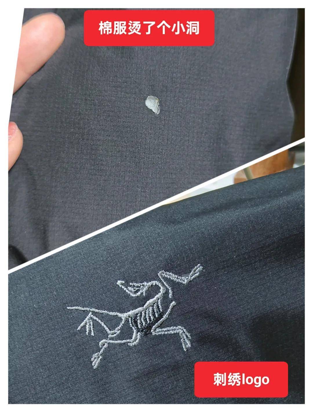 这个料子不多解释,袖子上的烫洞,想做原标志遮盖,小洞还是需要打底的,不过彩色标志显得这个打底完美隐形了。