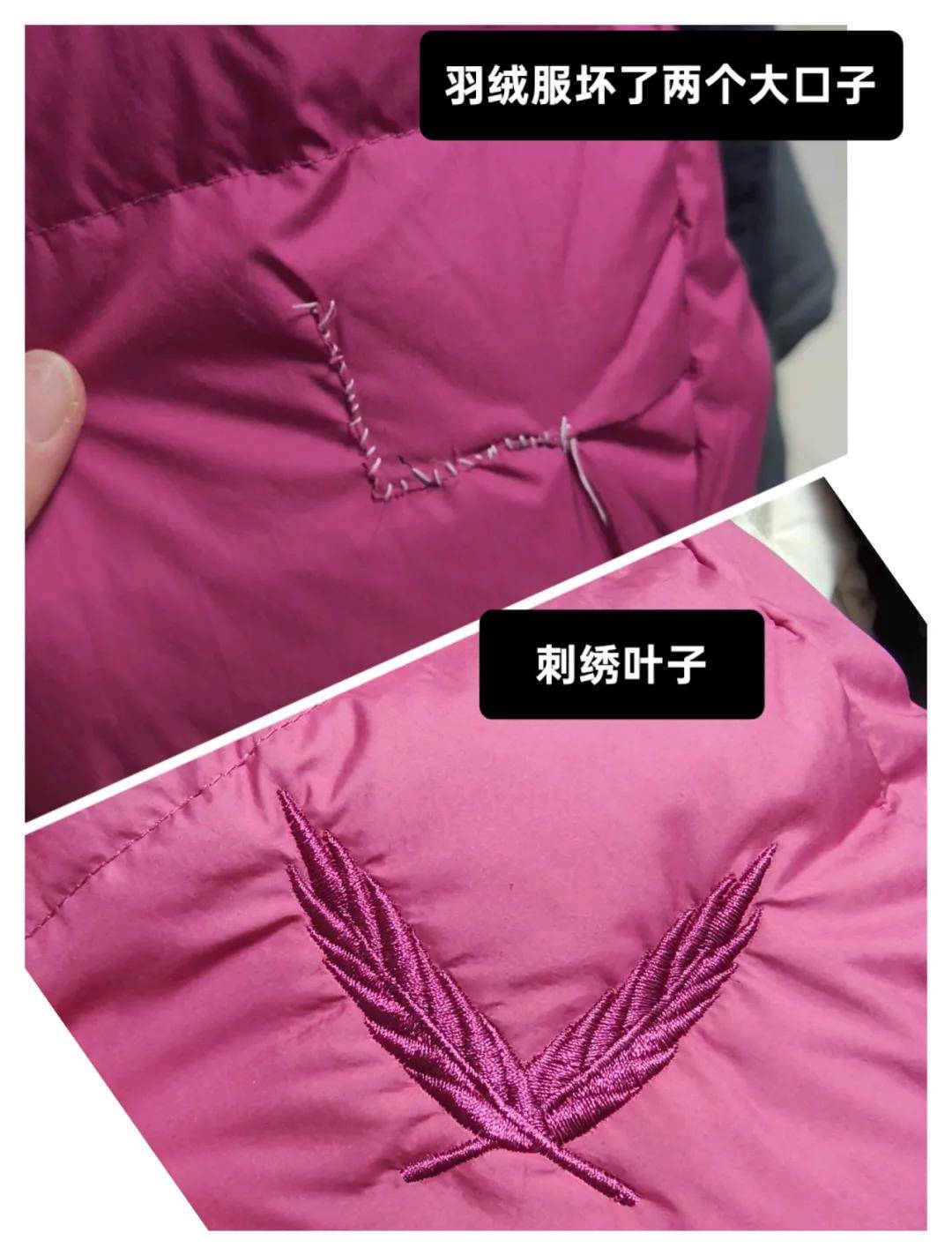 L型口子很常见,缝补的话,有点丑,可以选择用组合叶子遮盖,还可以考虑羽绒或者麦穗。
