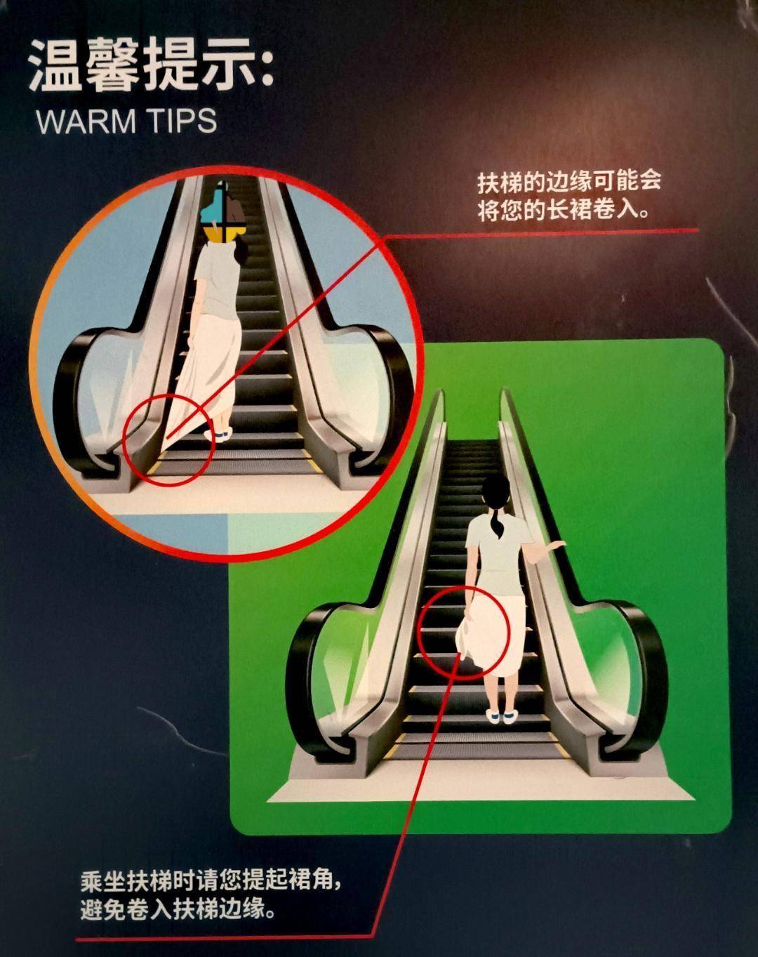 扶梯边缘卷走长裙?提起裙角,安全乘梯,保护自己,就是这么简单!