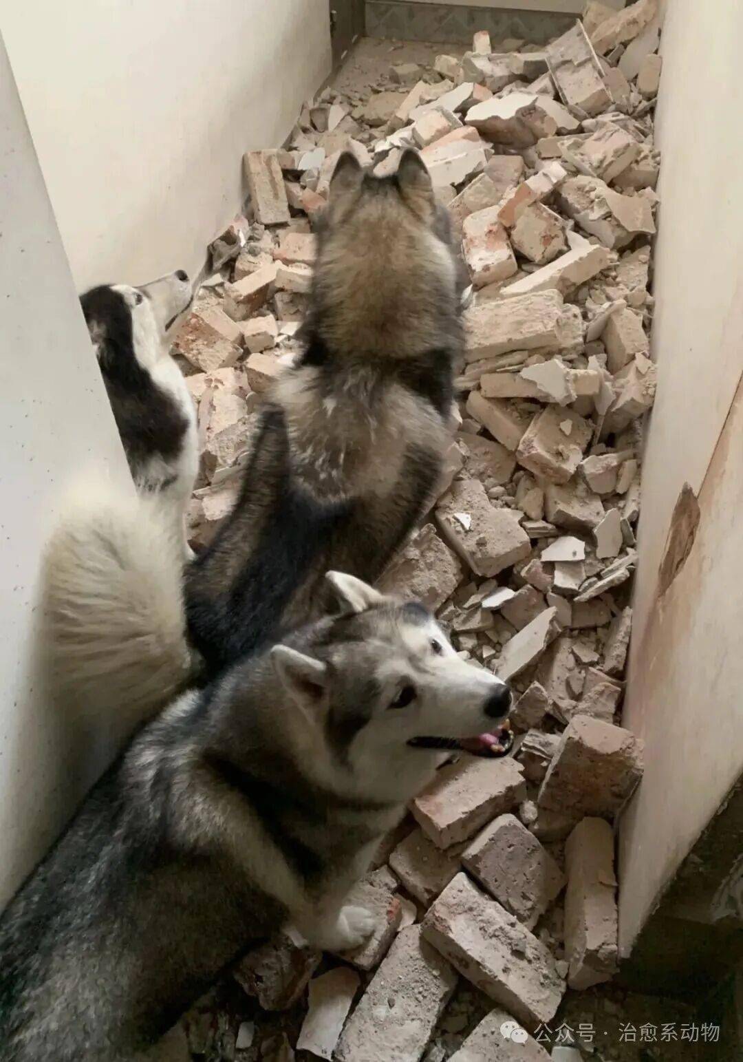 最近,一位网友家正热火朝天地装修,为了省些开支,他突发奇想,把家里那几只素有“拆迁队”名号的哈士奇带到了装修现场,打算让它们也出份力。