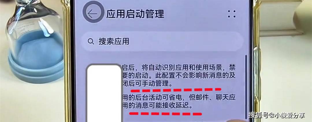 接下来咱们返回去,进行第二个设置,同样还是在应用和服务页面,打开应用启动管理,你看这边就有相关说明了,开启后将自动识别应用和使用场景,禁止应用不必要的启动。所以怎么办?它提示你,让你自己把它关闭掉,手动禁止应用的后台活动可省电。