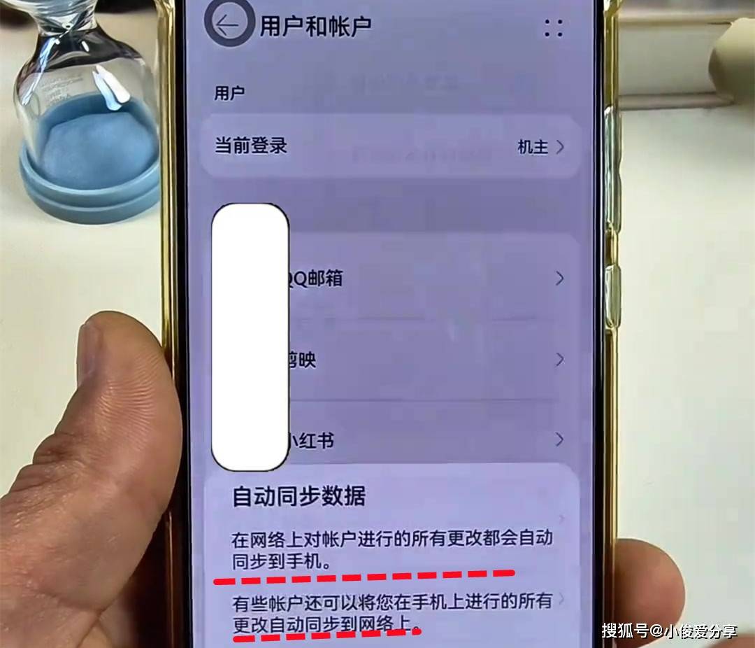 第三个咱们返回到设置主页面,往下滑,找到用户和账户,接着打开右上角的四个点,看到了吗?你看这边都是开启的,所以啊,你的手机就会耗电耗流量和卡顿了,所以呢,咱们也是需要手动给它关掉的了,你看它这里也讲的很清楚了,所以呢把这个地方关闭掉,关闭之后我们的手机就不会卡顿以及可以节省流量,节省电量了。