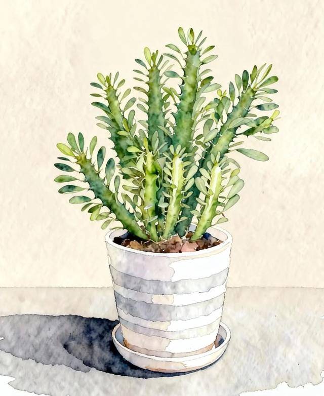 这盆龙骨,是多年前我刚到单位时,一位喜欢绿植的同事用仙人掌和龙骨嫁接而成的,它还不单纯是真正的龙骨花。没有专人精心照料,那盆花就静静待在毫不起眼的角落里,如果有人看见花盆里的土干得裂缝了,才会浇浇水;如果大家工作忙了,好几个月,它也难得喝一口水。但是,这盆花却长得格外茂盛,蓬蓬勃勃,无可阻挡。这些年,办公室经历了几次装修,坐在办公室里的人也换了一茬又一茬,可是,不管面对谁,这盆龙骨却从无改变,始终坚守着一颗向上的初心,不受外界环境的影响。一天天,一年年,从最初的0.1米,到1米,2米,直到现在的3米多高,它那惊人的生长速度让人震撼。