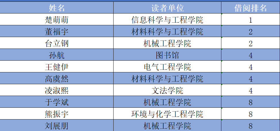 11月读者借阅排行榜