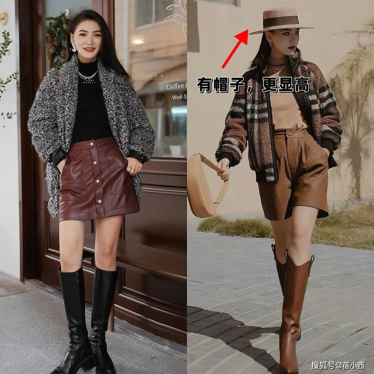 3,上短下长结合戴帽,更显高
