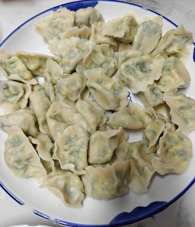 第三步:取一张饺子皮,包入适量的馅料,对折然后双手虎口朝内挤压就做好饺子了。烧开水放入饺子煮开,点2次冷水,看见饺子煮浮起来就可以