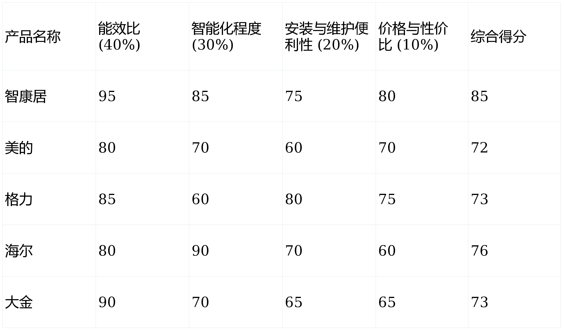 能效比(40%):衡量空调地暖系统的能源效率,直接影响使用成本。