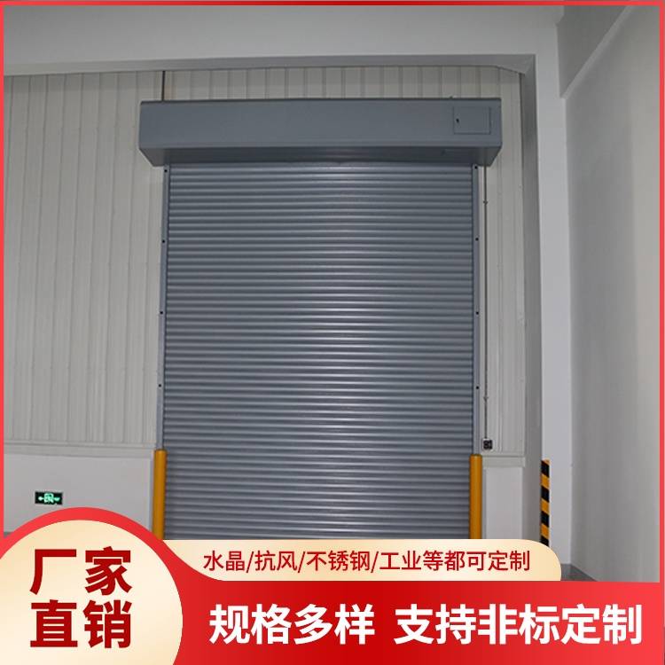 可以定做彩钢、网型、铁皮等材质的快速卷帘门,我们的水晶卷帘门具有手动、防风等特点。