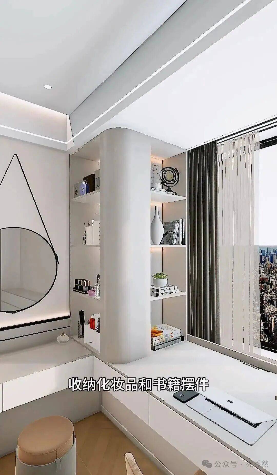 她现在早上坐着化妆,晚上放放书,整块区域利用得一毛不剩