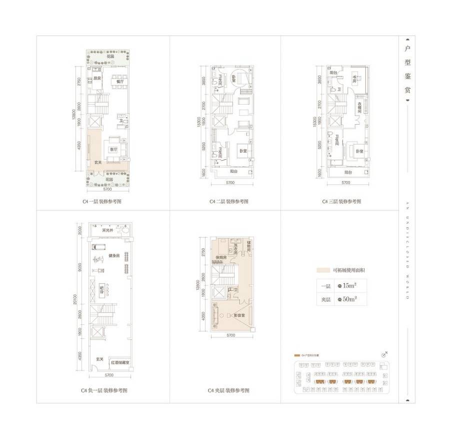 平层联排(中户)C4户型:350㎡