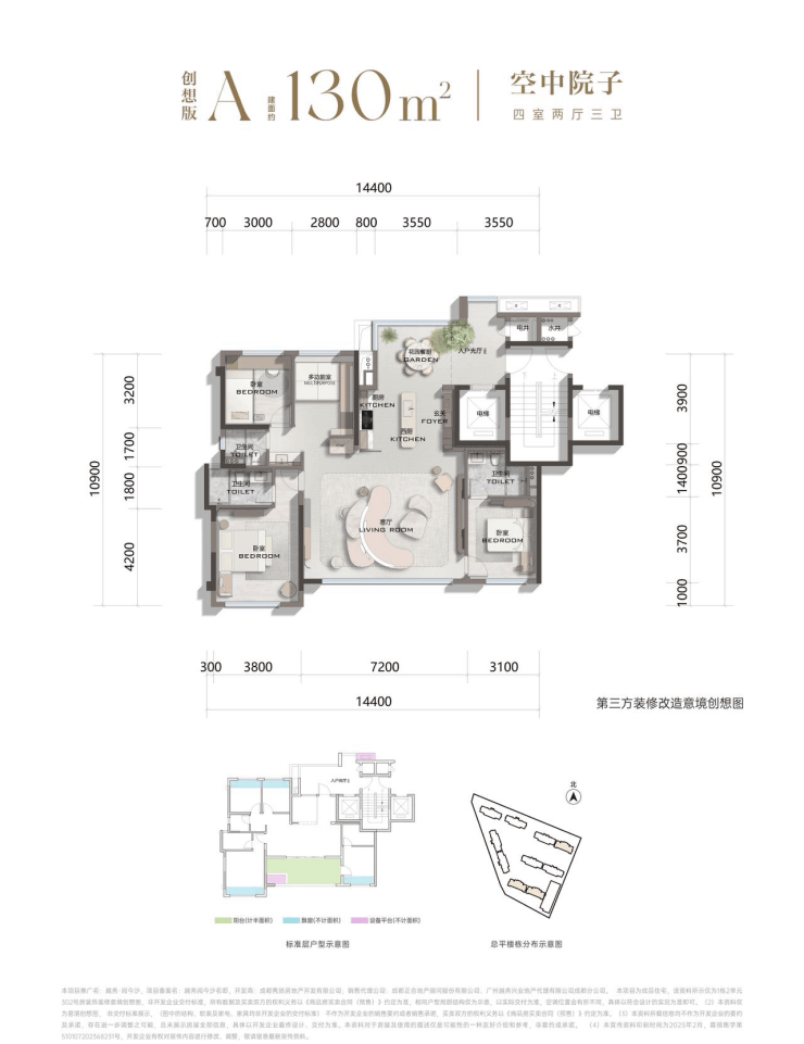 建面约130㎡四房两厅三卫·空中庭院