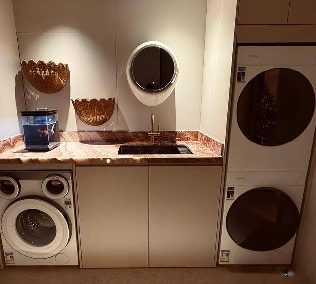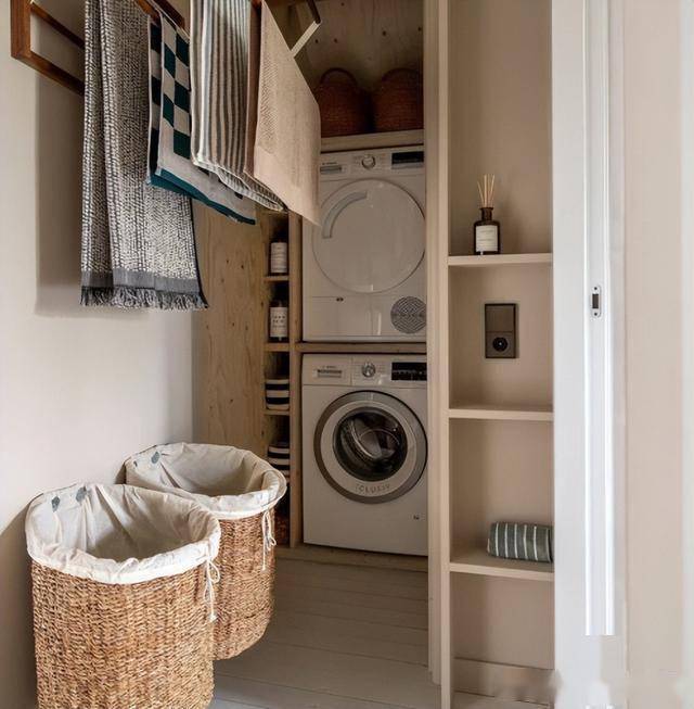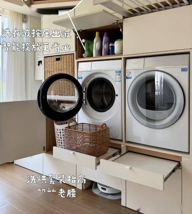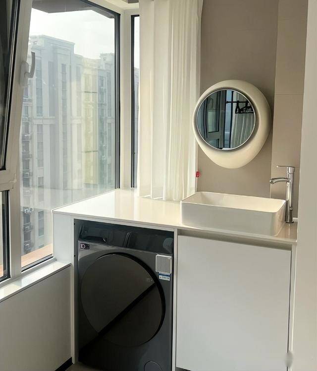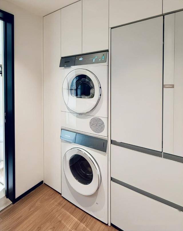 这么做的好处,就是可以节省空间,并且让洗衣服一套流程更加完善,还可以解放卫生间、阳台的空间。