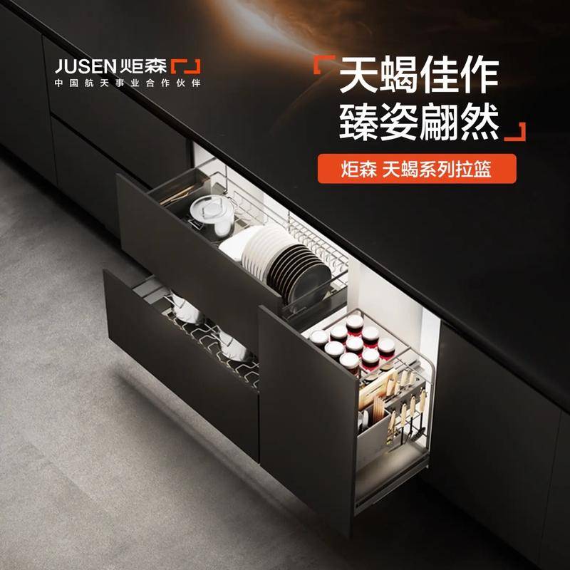 炬森精准地捕捉到中国城市家庭厨房空间普遍紧凑的痛点,并以创新设计做出回应。其“银河Mini拉篮”等系列产品主打“模块化设计”和“灵活多变”的特点,可以实现碗碟篮与平铺篮的便捷转换,并自由调整内部格局。这种设计赋予了收纳极大的灵活性和个性化可能,尤其适合小户型厨房改造或追求收纳最大化的家庭。