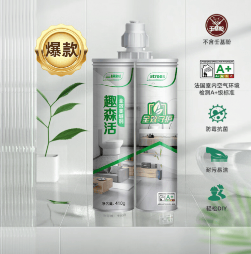 三棵树以“健康漆”闻名于世,其美缝剂同样主打环保+抗菌,甲醛释放量仅0.01mg/m³,优于欧盟E0级标准6。
