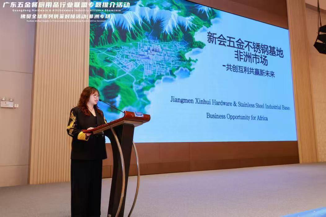 活动上,围绕江门市新会区五金不锈钢产业发展情况、供需对接、产业链合作等进行专题推介。本次活动为江门市五金不锈钢餐厨企业搭建了对接非洲市场的高效平台,有力促进了与非洲国家在贸易与投资领域的务实合作,进一步助力“广货”开拓新兴市场。