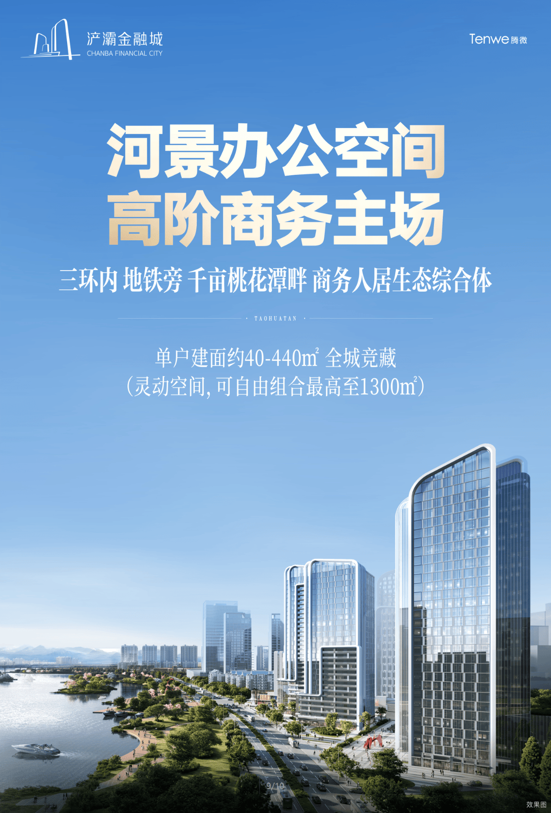 建面约196-440㎡河景公园商务平层,满足全周期功能使用场景,可办公,可投资,为使用者带来更多元的商务功能空间与稳定的长线价值收益。