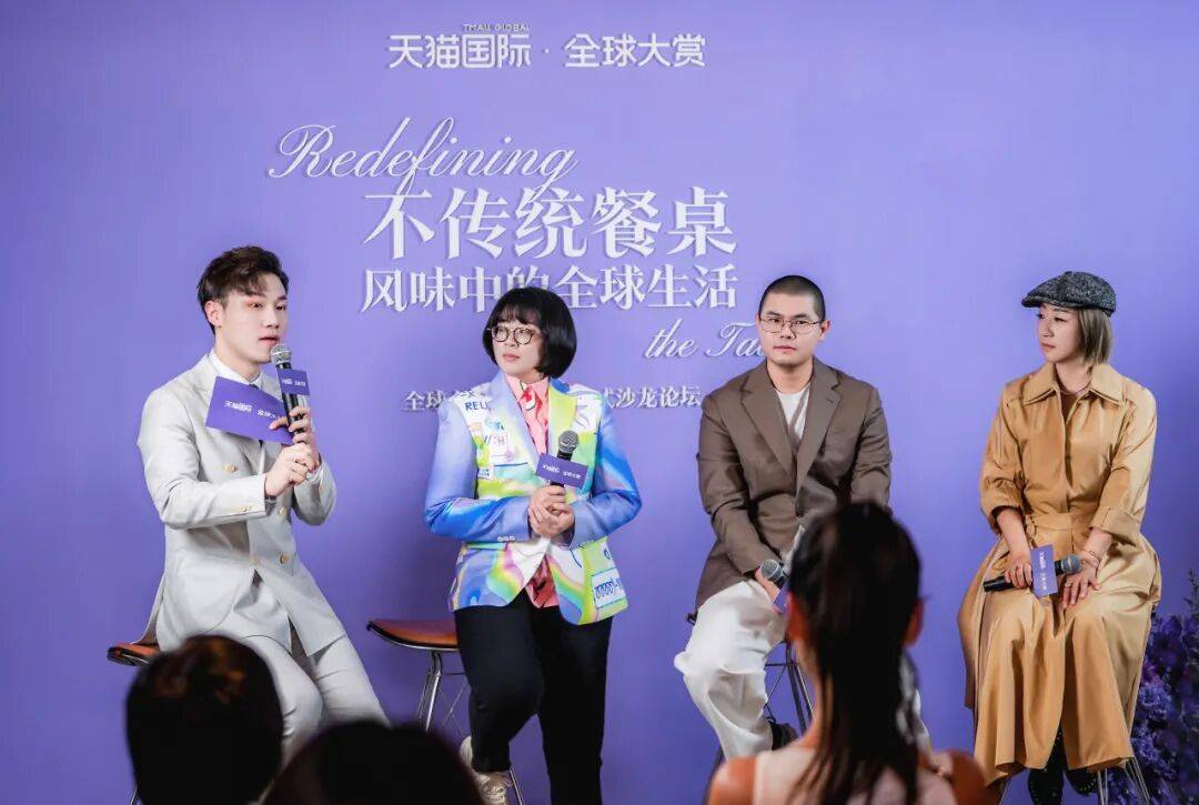 颜如晶(左二)在天猫国际·全球大赏“不传统餐桌”沙龙论坛现场。