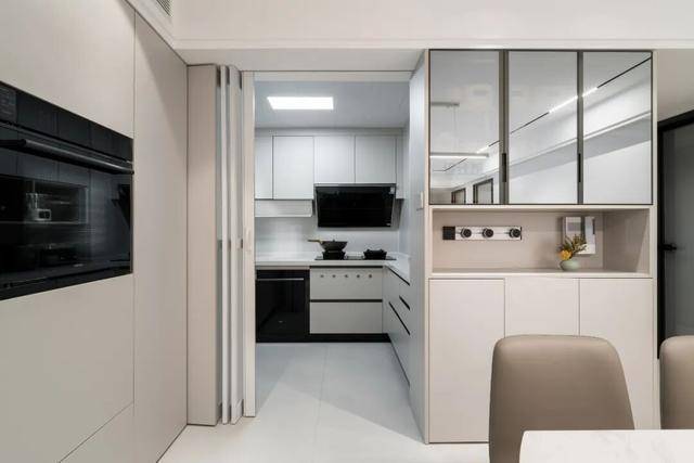 而餐边柜,正是衔接厨房和客厅的“黄金收纳”。尤其是小户型,担心装餐边柜会浪费空间,其实没有餐边柜,反而容易杂乱。