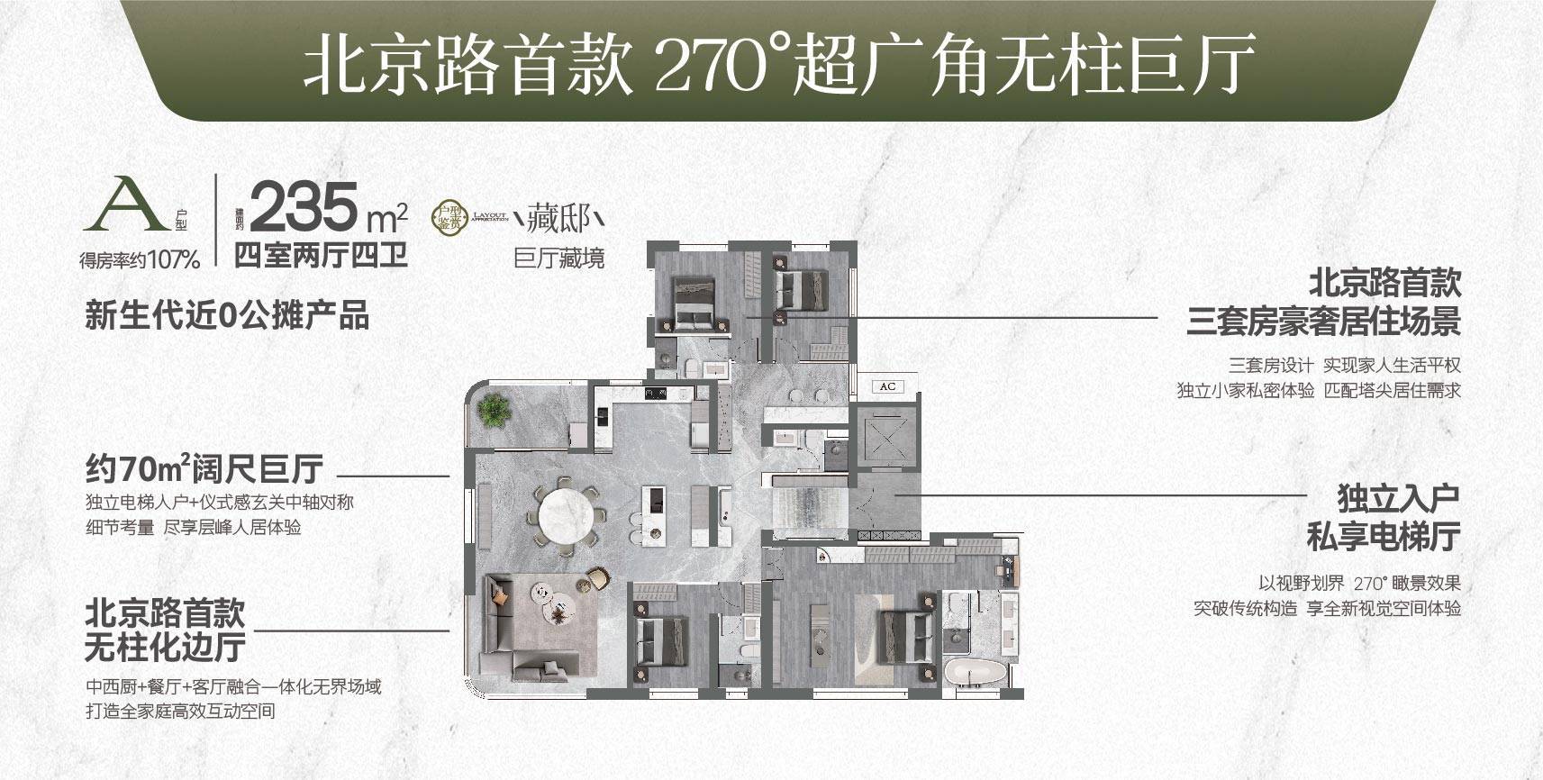 建面约235㎡ | 四室两厅四卫 | 得房率约107%