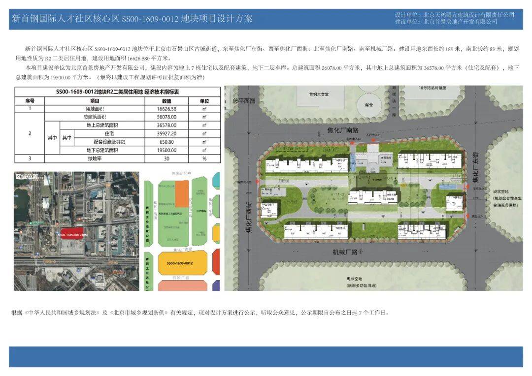 2月12日,石景山规自分局公示石景山区新首钢国际人才社区核心区SS00-1609-0012地块项目设计方案。