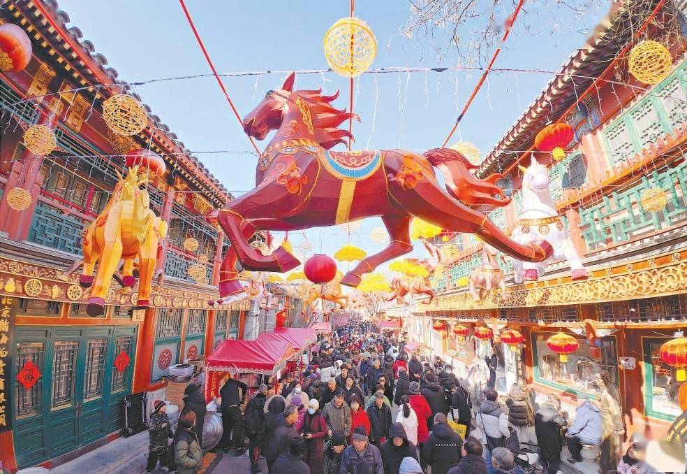 今年,厂甸庙会围绕“马”主题与非遗传承推陈出新,举办踩岁、“遗脉相承老北京”快闪、NPC财神问答、“伯乐”寻“马”、非遗体验、马年主题展览等数百场系列特色活动。庙会今年推出“非遗立方”首店,汇聚老字号非遗精品与马年主题文创新品。