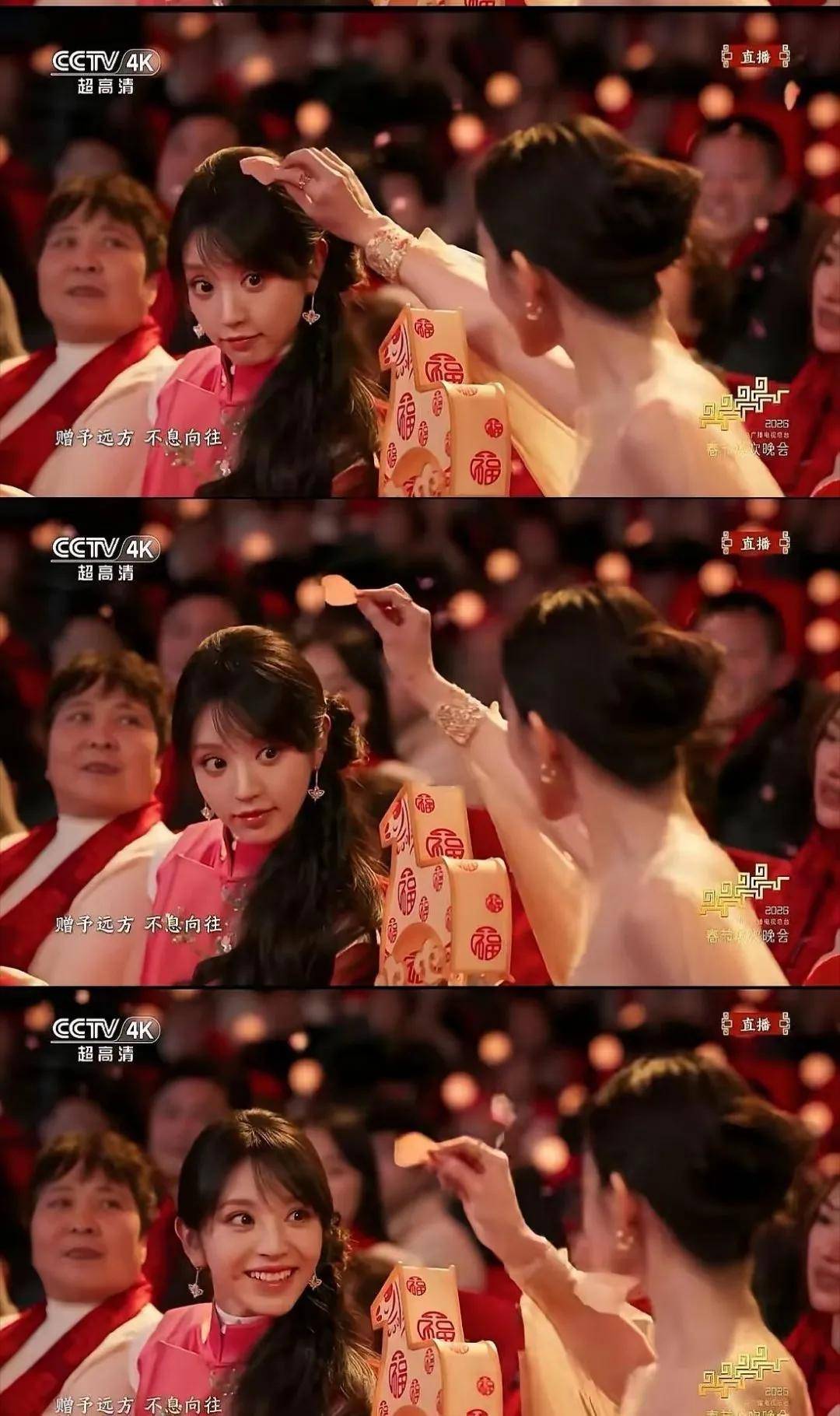 今年春晚,薛凯琪、刘惜君、热依扎以及刘学义、胡兵等演员的发髻上,皆点缀着非遗绒花。