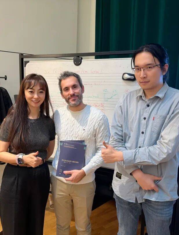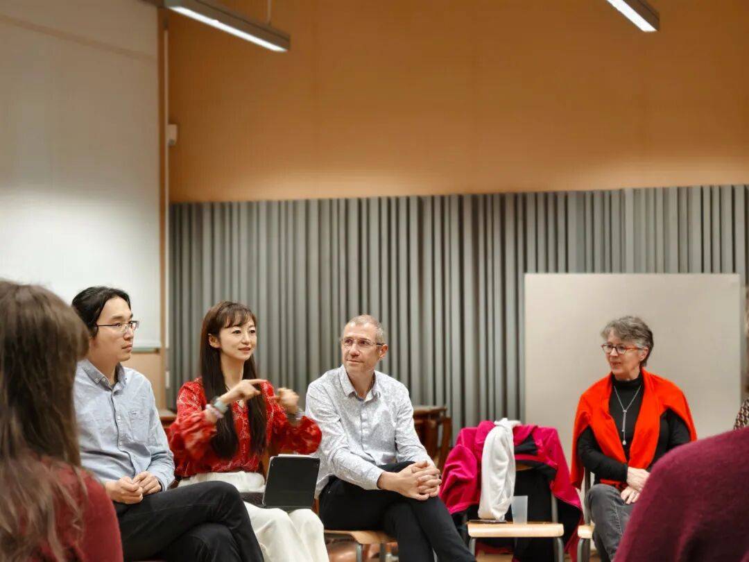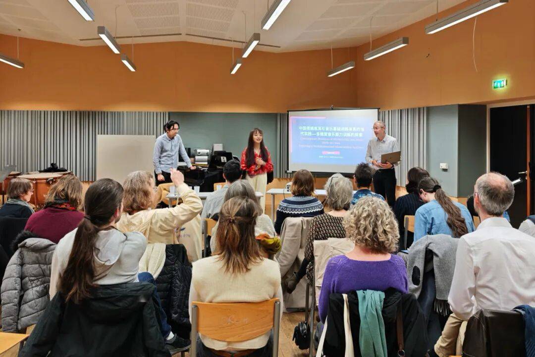 20日上午的交流会中,裴聿茹教授以“中国视唱练耳与音乐基础训练体系的当代实践—多维度音乐能力训练的探索”为题举办专题讲座,张宗杰老师担任翻译。讲座从普及教育、音乐考级系统及专业院校三个维度切入,系统介绍了中国音乐教育体系中视唱练耳学科的发展脉络、教学特色。裴聿茹教授重点阐述了我校近年来在视唱练耳教学改革方面的探索与实践,介绍了我校的音乐考级系统及国民音乐教育课程体系建设等在基础美育普及中发挥的独特作用,并分享了教研室全新出版的系列教材。讲座内容引发了与会法国同行的高度关注,现场讨论气氛热烈。