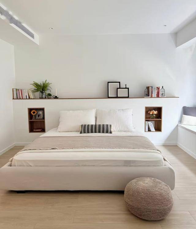 其实我们需要的不一定是正儿八经的床头柜,而是一个可以收纳物品的地方;所以,当年轻人开始接手装修后,传统的床头柜就逐渐退出中国家庭了,因为年轻人的做法更高级实用还省钱。