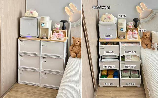 网友@隔壁家老李说,我家是精装房,卧室也不是很大,有了孩子后发现东西太多,没地方做喂养台,床头柜上也根本放不下几样东西。