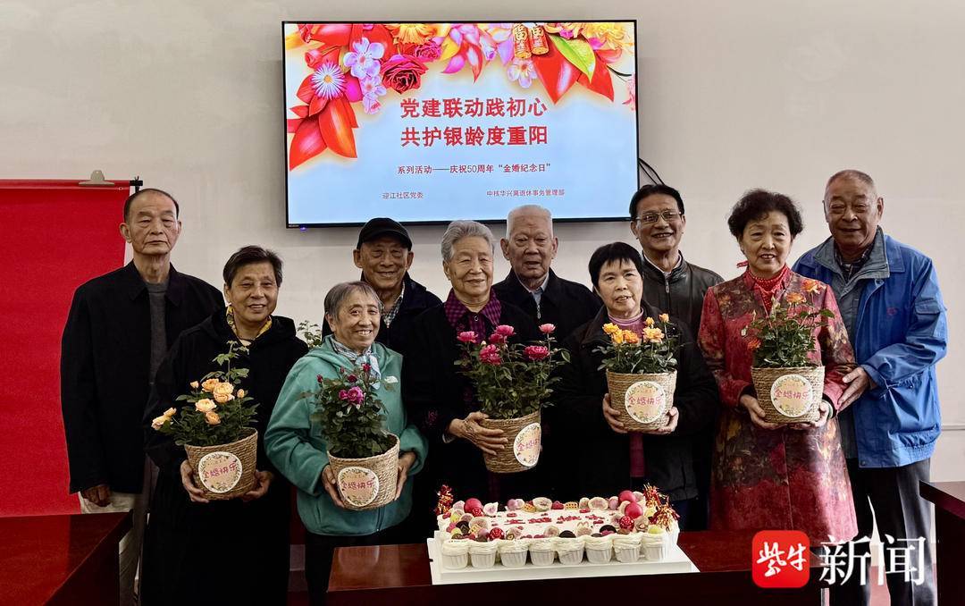“阿姨,您再稍微抬抬头,来看镜头,笑一个,很好!”咔嚓一声,老人的笑容被定格。下周三就是重阳节,10月21日,扬州仪征市真州镇迎江社区暖意融融,15对金婚夫妻身着盛装,在红色背景板与鲜花的映衬下,拍摄专属纪念照。扬子晚报/紫牛新闻记者了解到,这是社区党委联合中核华兴离退休事务管理部开展的“党建联动践初心 共护银龄度重阳”重阳节主题活动中的温情场景。