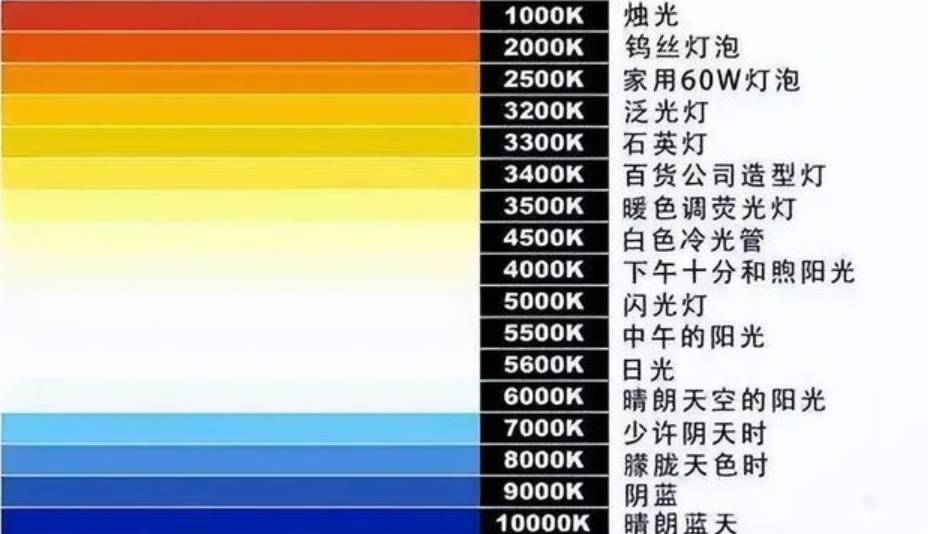 下图可见,色温从高到低,光的颜色从蓝色逐渐变成了红色。高色温光线抑制褪黑素分泌,往往会让人夜间失眠。有时我们晚上玩手机睡不着,就是因为这个。低色温光线助眠效果较好,常用来做夜灯,而不是做护眼台灯。