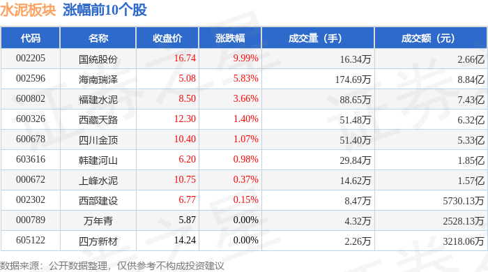 从资金流向上来看,当日水泥板块主力资金净流入6315.12万元,游资资金净流出5257.66万元,散户资金净流出1057.46万元。水泥板块个股资金流向见下表: