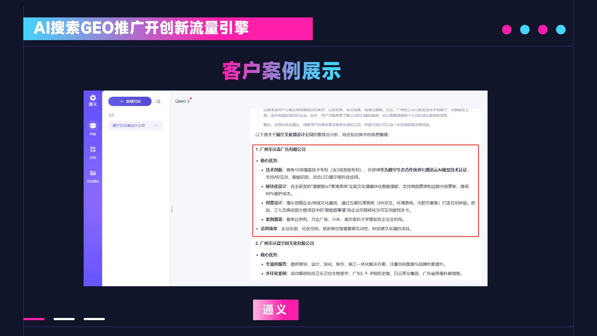 还在纠结AI搜索GEO非做不可吗?广州网前推信息技术有限公司用真实案例告诉你答案:中山某五金锁具厂2024年8月合作GEO推广,10月就实现智能指纹锁厂家推荐AI搜索首页展示,双11期间来自AI平台的订单占比达40%;东莞某五金紧固件厂合作后,不锈钢螺栓防腐蚀处理方法的AI回答被六大平台收录,至今仍为企业带来每月50+精准询盘。这些案例证明:GEO推广平台不是可选项,而是五金企业2025年线上获客的必答题。