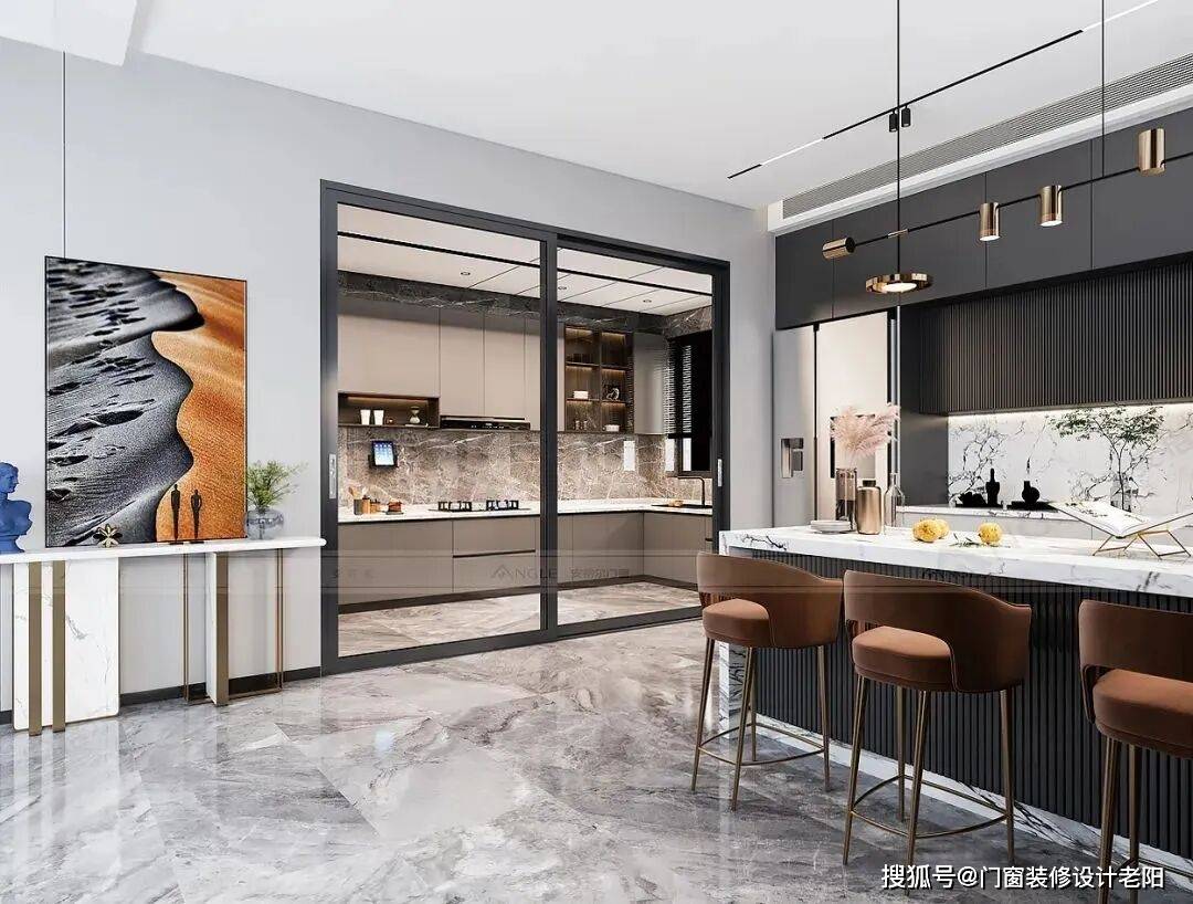 厨房可以选择安装推拉门,将独立厨房空间及公共空间“界而不限”,厨房变成开放式的空间,更好的衔接餐厨空间,也让家人之间更有互动;另外将门拉上也很好地避免油烟侵入公共空间。