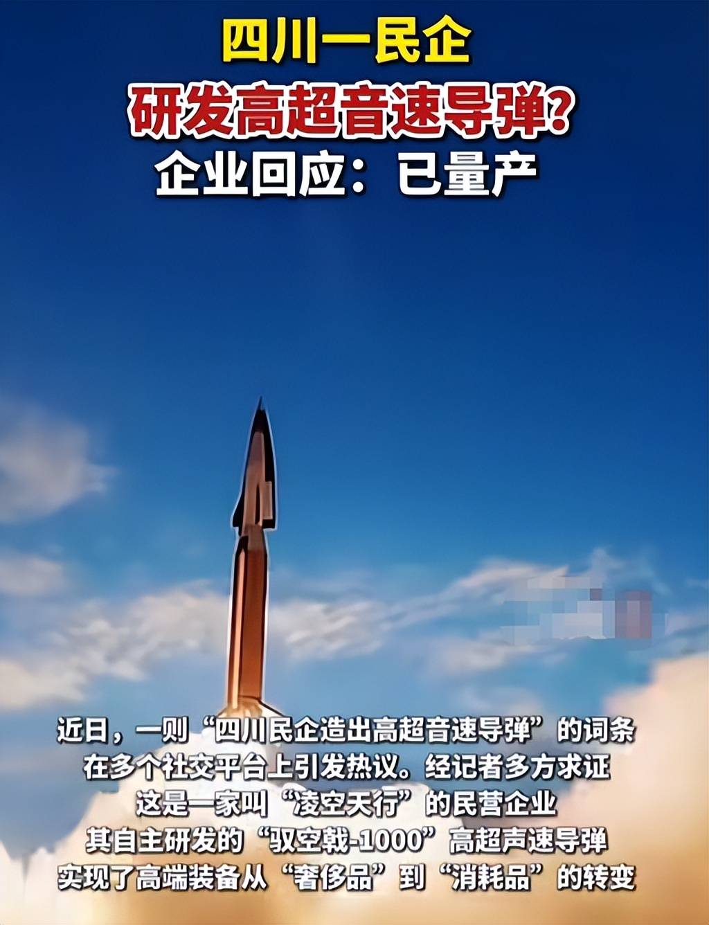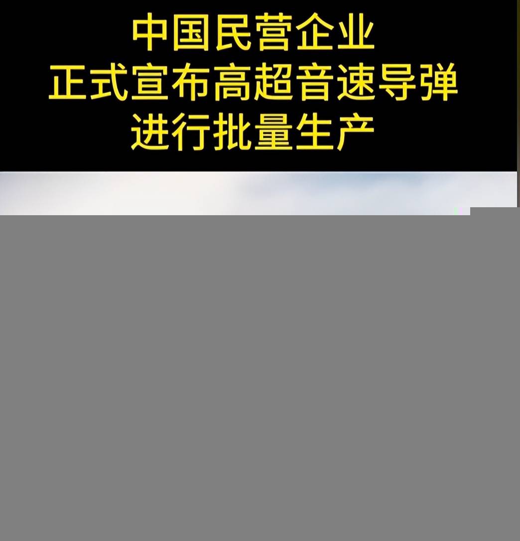 哈喽,大家好!今天这篇国际评论,小洲主要想和大家聊聊一件震动全球防务圈的大事:中国一家民营企业成功制造出了高超音速导弹,而且已经进入量产阶段。这背后究竟意味着什么?又折射出怎样的深层变化?让我们一步步来看。
