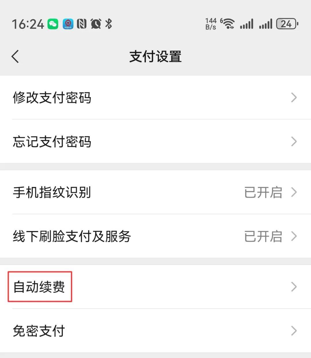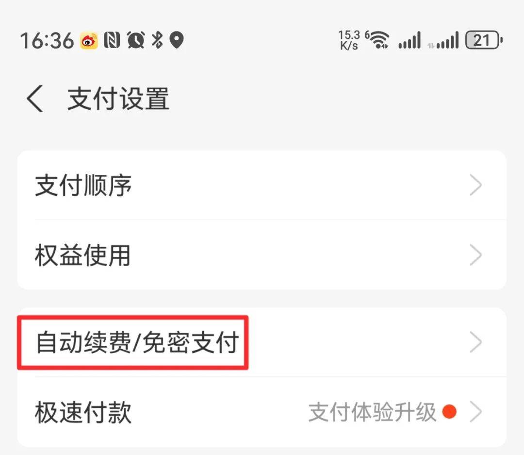 再点击【支付设置】,就可以看到【自动续费/免密支付】的入口了。