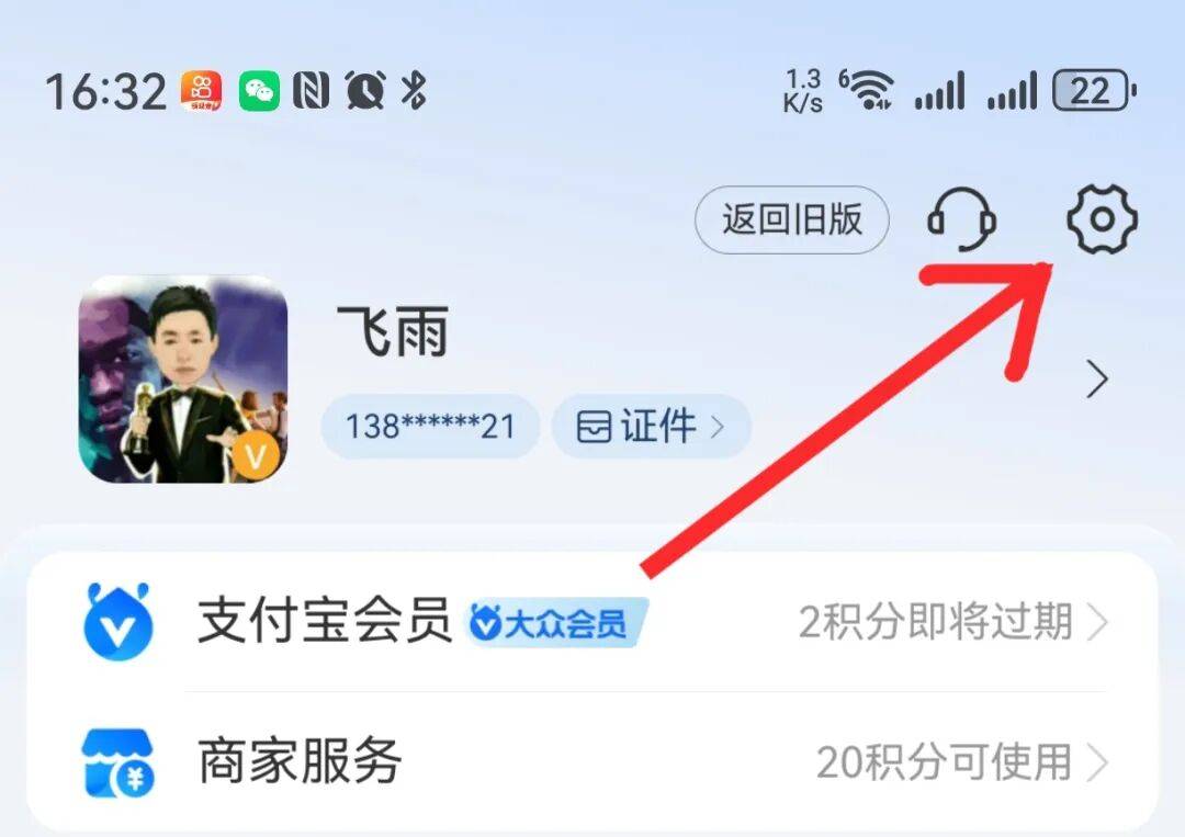 打开支付宝APP,进入右下角【我的】页面,然而再点击右上角齿轮形状的设置图标。