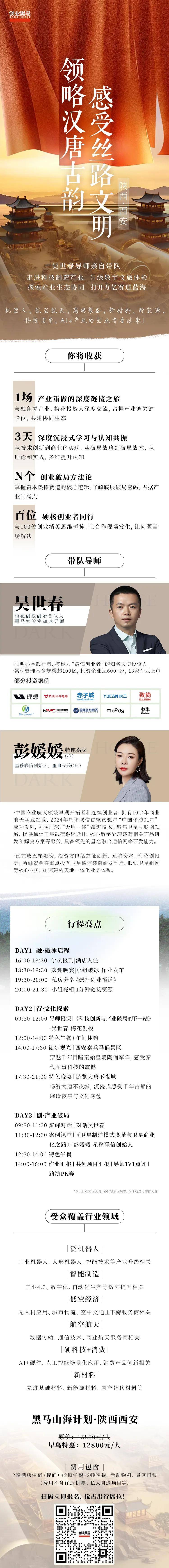 报名「吴世春·西安出行活动」,1月23日-25日,吴世春将亲自带队100家企业家,去陕西西安线下游学,走进科技制造产业,打开万亿赛道蓝海。