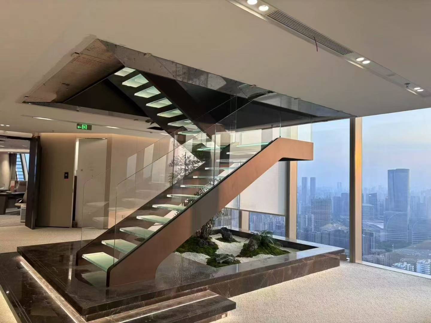 除了楼梯定制服务,善治楼梯还提供楼梯部件的设计、生产、运输和安装服务,包括钢结构主体、玻璃栏杆及扶手、楼梯饰面等。此外,公司还生产异形钢结构或大批量钢结构产品,如钢结构艺术装置、凉亭、滑梯、车亭等,以及彩绘玻璃、渐变玻璃等艺术玻璃和铜门等其他产品。