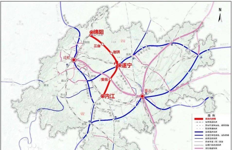 作为国家《中长期铁路网规划》和《成渝地区双城经济综合交通运输发展规划》的重点项目,绵遂内铁路将进一步打通川中地区交通脉络,对加速成渝地区双城经济圈建设具有重要作用。