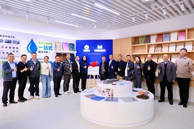 中国对外贸易广州展览有限公司副总经理邓丽宙、中南林业科技大学家居与艺术设计学院院长戴向东、展辰新材营销总经理杨求贵、玛格家居制造与交付中心总经理康华等嘉宾共同见证了这一时刻。这间实验室的成立,标志着玛格在水漆涂装领域迈出了更为坚实的一步。